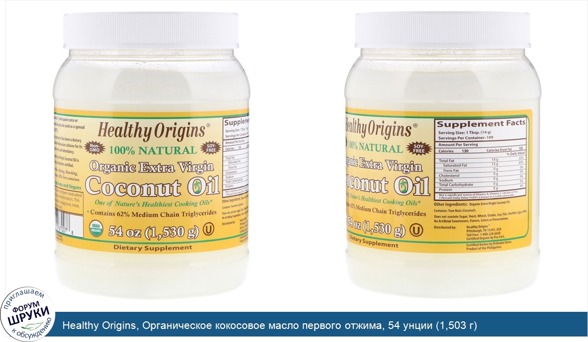 Друзья, если у вас есть отзыв/дополнение/комментарий/вопрос относительно Healthy Origins, Органическое кокосовое масло первого отжима, 54 унции (1,503 г) - напишите его ответом в эту тему (это будет полезно всему сообществу в целом и вам в отдельности).