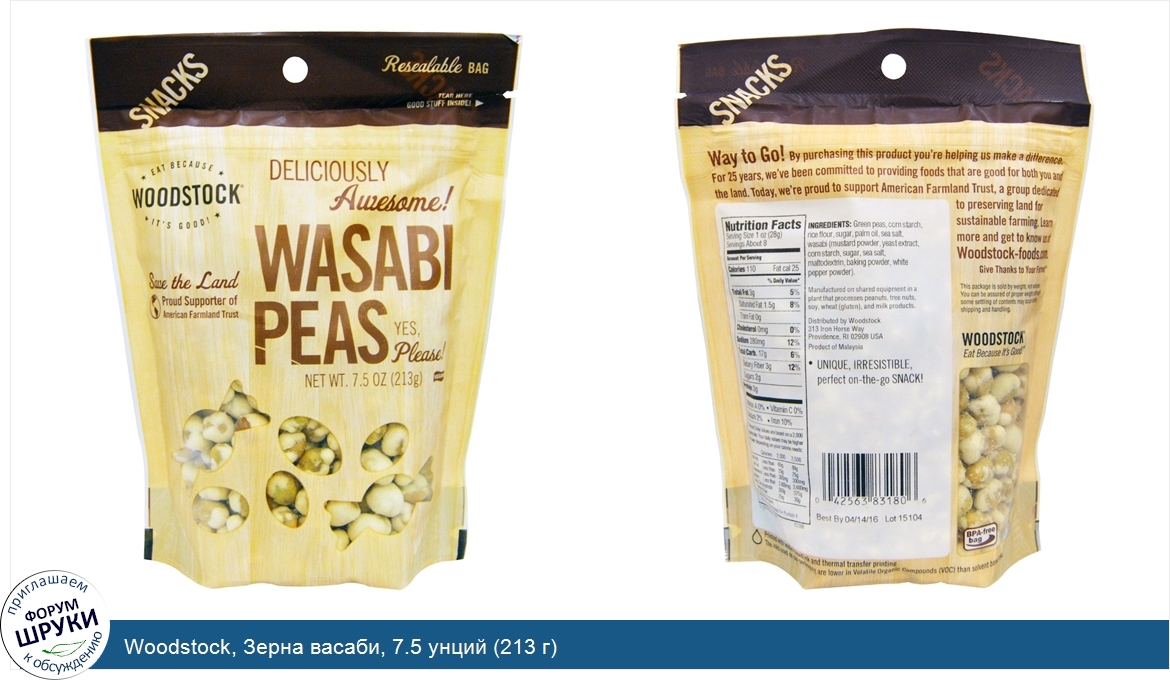 Друзья, если у вас есть отзыв/дополнение/комментарий/вопрос относительно Woodstock, Зерна васаби, 7.5 унций (213 г) - напишите его ответом в эту тему (это будет полезно всему сообществу в целом и вам в отдельности).