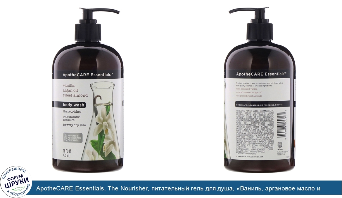 ru ApotheCARE Essentials, The Nourisher, питательный гель для душа, «Ваниль, аргановое масло и сладкий миндаль», 473мл