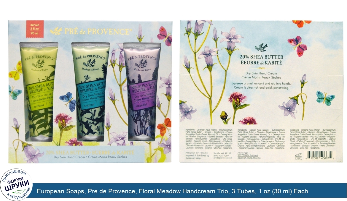 Друзья, если у вас есть отзыв/дополнение/комментарий/вопрос относительно European Soaps, Pre de Provence, Floral Meadow Handcream Trio, 3 Tubes, 1 oz (30 ml) Each - напишите его ответом в эту тему (это будет полезно всему сообществу в целом и вам в отдельности).