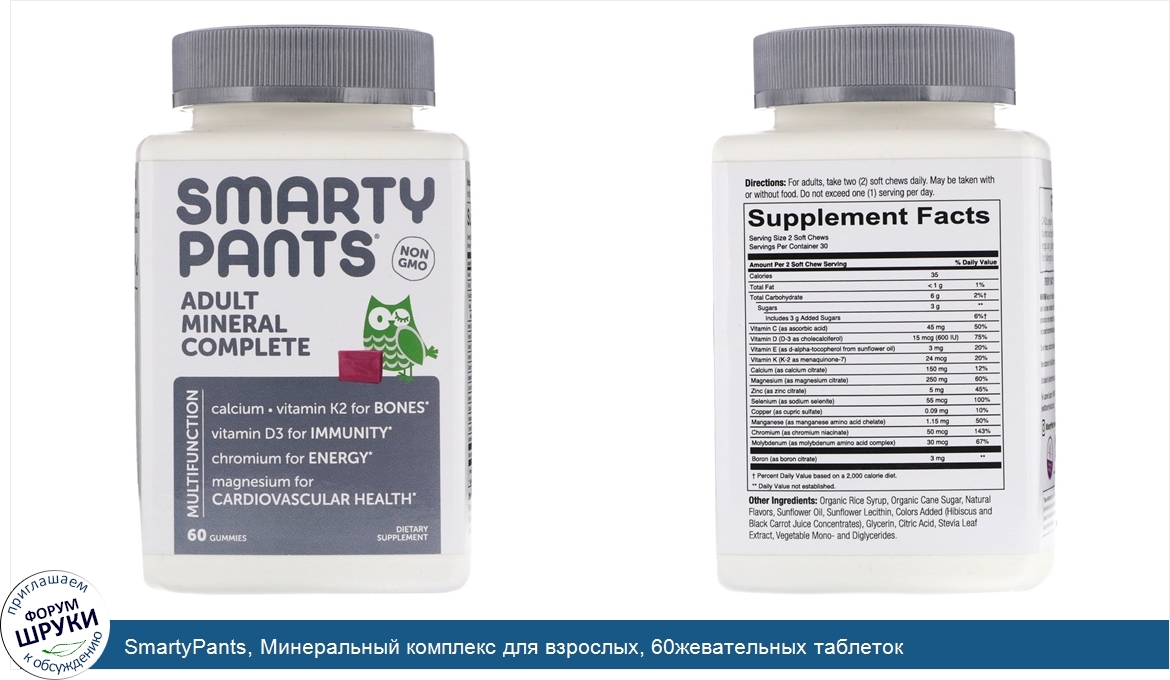 Друзья, если у вас есть отзыв/дополнение/комментарий/вопрос относительно SmartyPants, Минеральный комплекс для взрослых, 60жевательных таблеток - напишите его ответом в эту тему (это будет полезно всему сообществу в целом и вам в отдельности).
