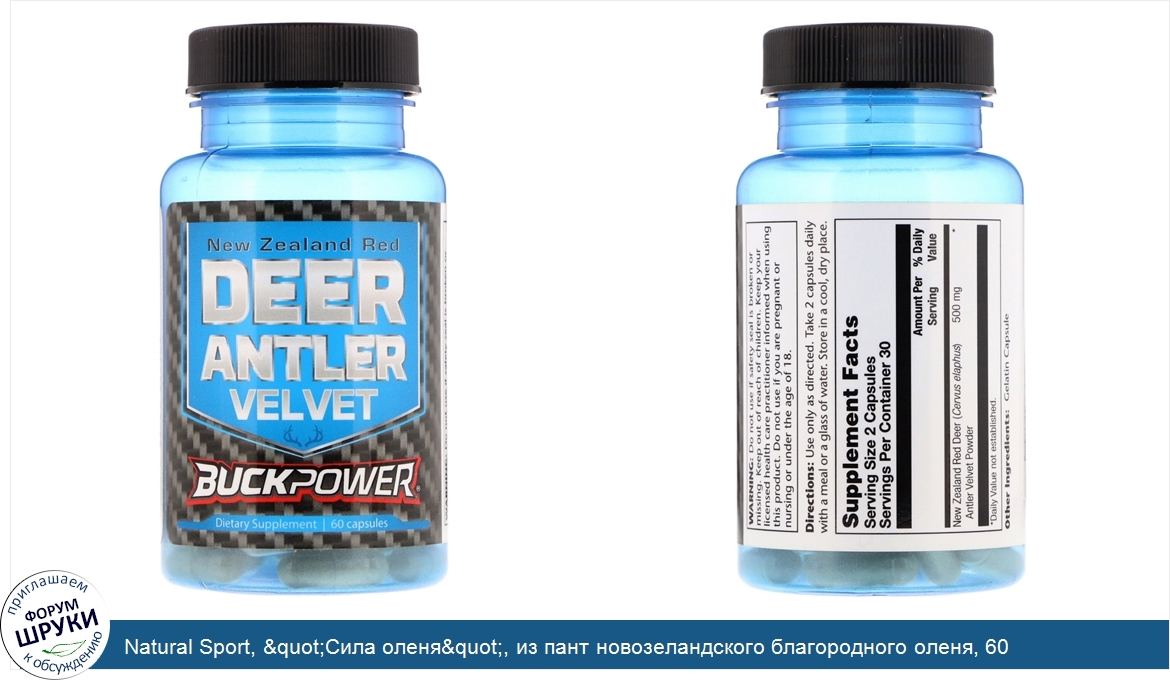 Natural Sport, "Сила оленя", из пант новозеландского благородного оленя, 60 капсул