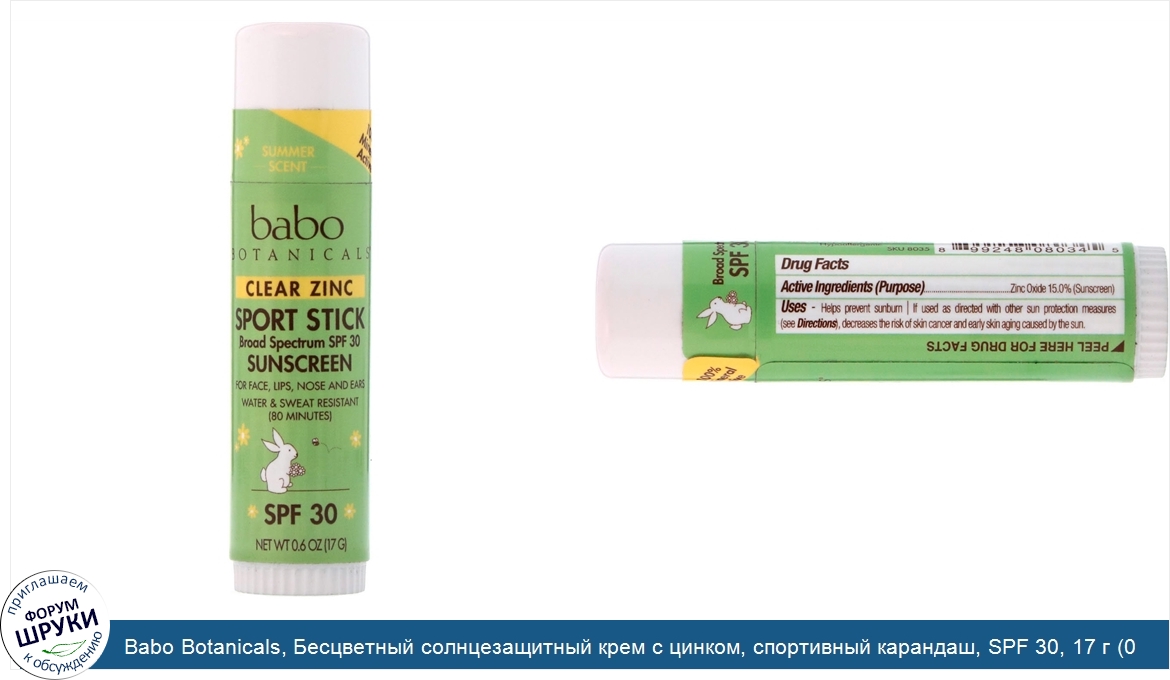 Друзья, если у вас есть отзыв/дополнение/комментарий/вопрос относительно Babo Botanicals, Бесцветный солнцезащитный крем с цинком, спортивный карандаш, SPF 30, 17 г (0,6 унций) - напишите его ответом в эту тему (это будет полезно всему сообществу в целом и вам в отдельности).
