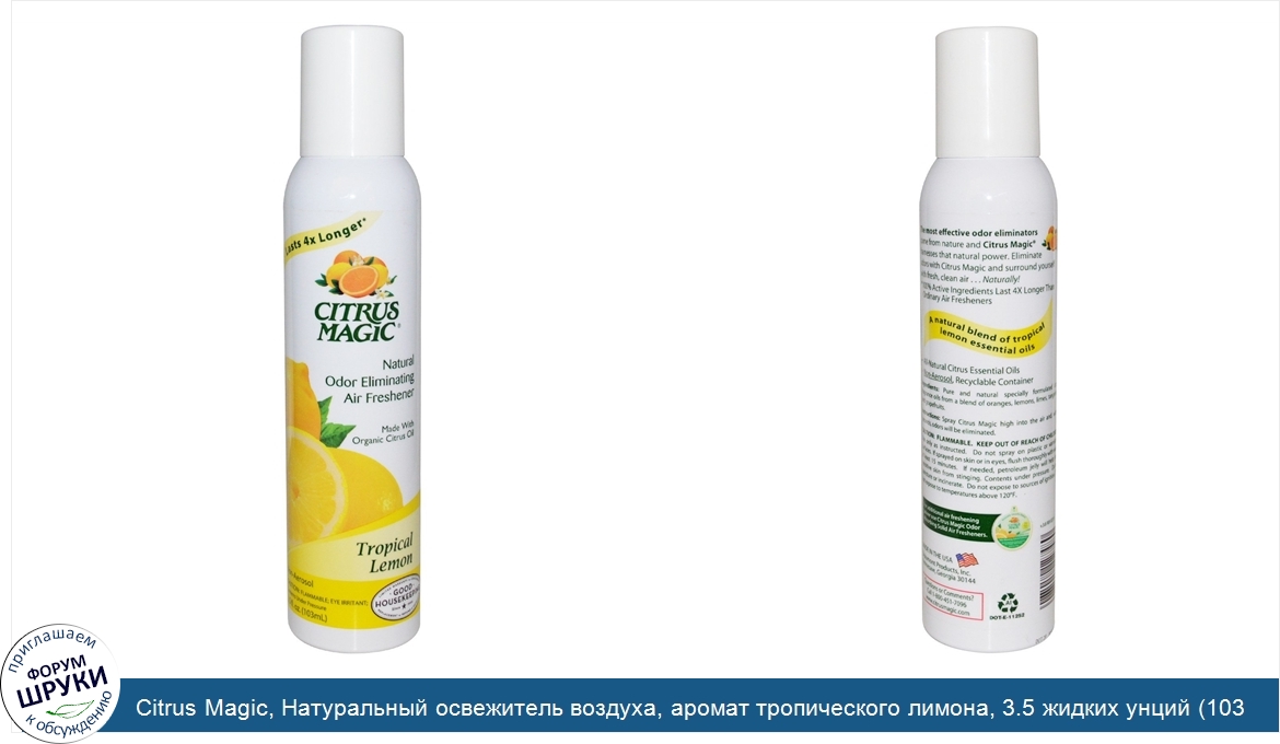 Друзья, если у вас есть отзыв/дополнение/комментарий/вопрос относительно Citrus Magic, Натуральный освежитель воздуха, аромат тропического лимона, 3.5 жидких унций (103 мл) - напишите его ответом в эту тему (это будет полезно всему сообществу в целом и вам в отдельности).