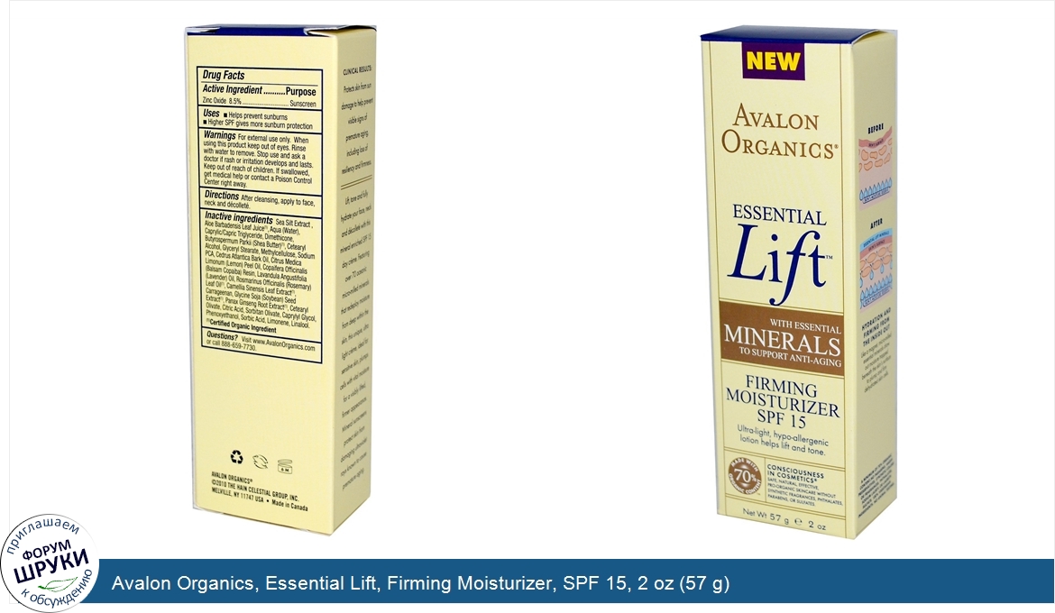 Друзья, если у вас есть отзыв/дополнение/комментарий/вопрос относительно Avalon Organics, Essential Lift, Firming Moisturizer, SPF 15, 2 oz (57 g) - напишите его ответом в эту тему (это будет полезно всему сообществу в целом и вам в отдельности).