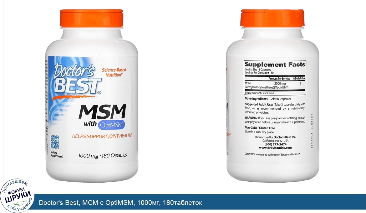 ru Doctor's Best, МСМ с OptiMSM, 1000мг, 180таблеток