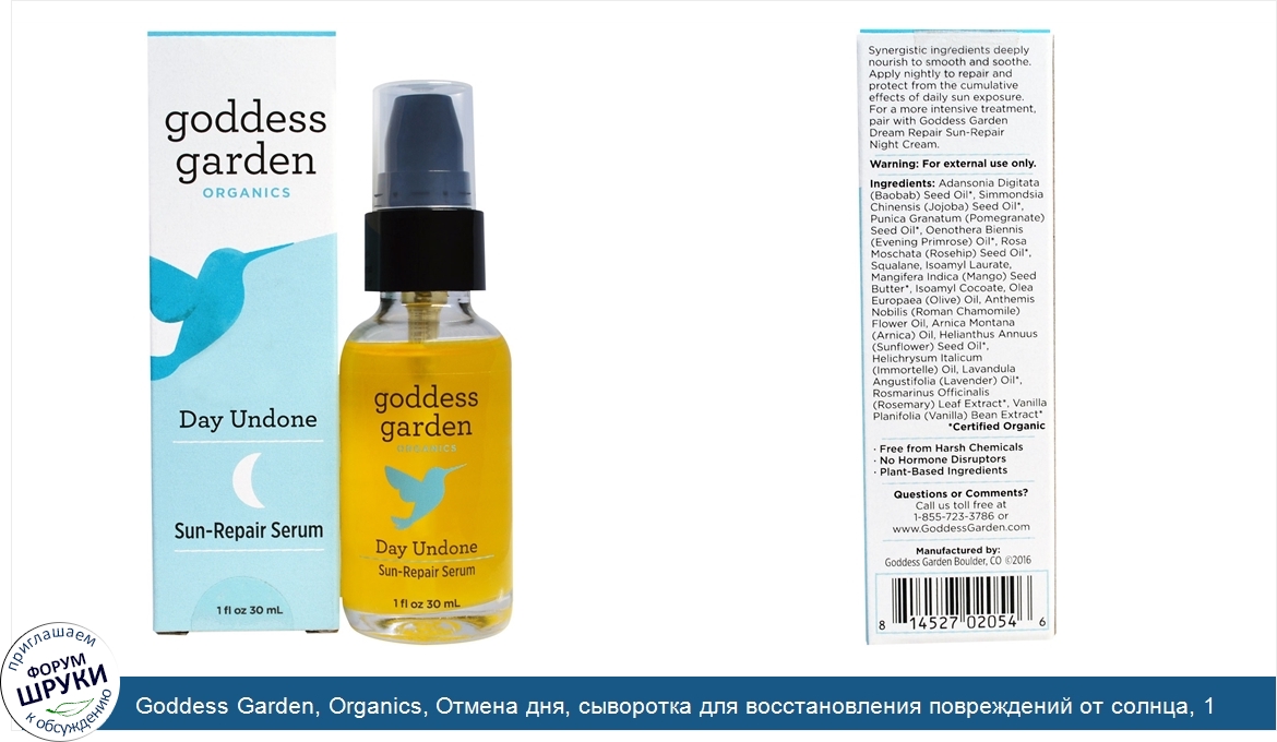 Друзья, если у вас есть отзыв/дополнение/комментарий/вопрос относительно Goddess Garden, Organics, Отмена дня, сыворотка для восстановления повреждений от солнца, 1 жидк. унц. (30 мл) - напишите его ответом в эту тему (это будет полезно всему сообществу в целом и вам в отдельности).