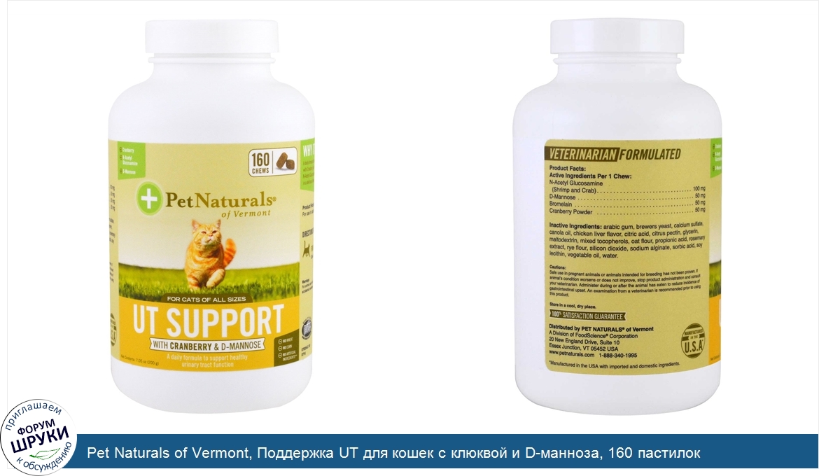 Pet Naturals of Vermont, Поддержка UT для кошек с клюквой и D-манноза, 160 пастилок