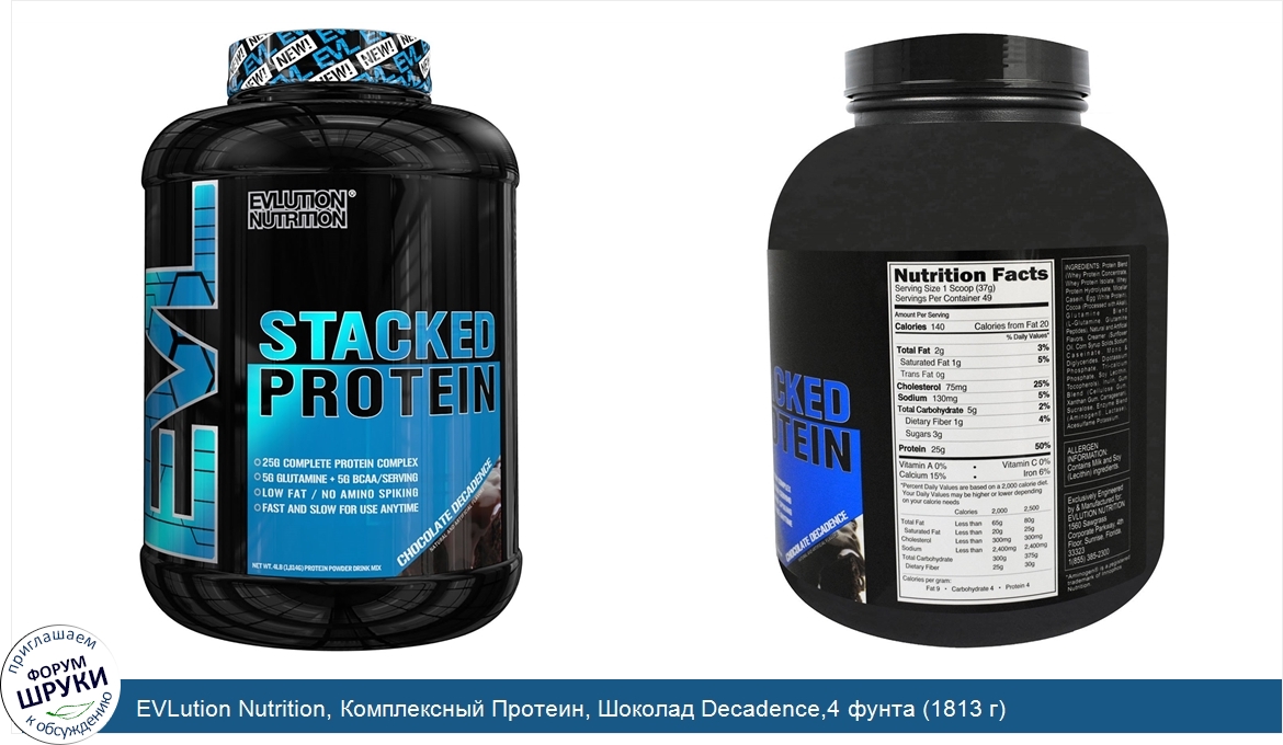 Друзья, если у вас есть отзыв/дополнение/комментарий/вопрос относительно EVLution Nutrition, Комплексный Протеин, Шоколад Decadence,4 фунта (1813 г) - напишите его ответом в эту тему (это будет полезно всему сообществу в целом и вам в отдельности).