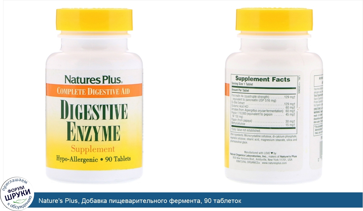 Nature's Plus, Добавка пищеварительного фермента, 90 таблеток