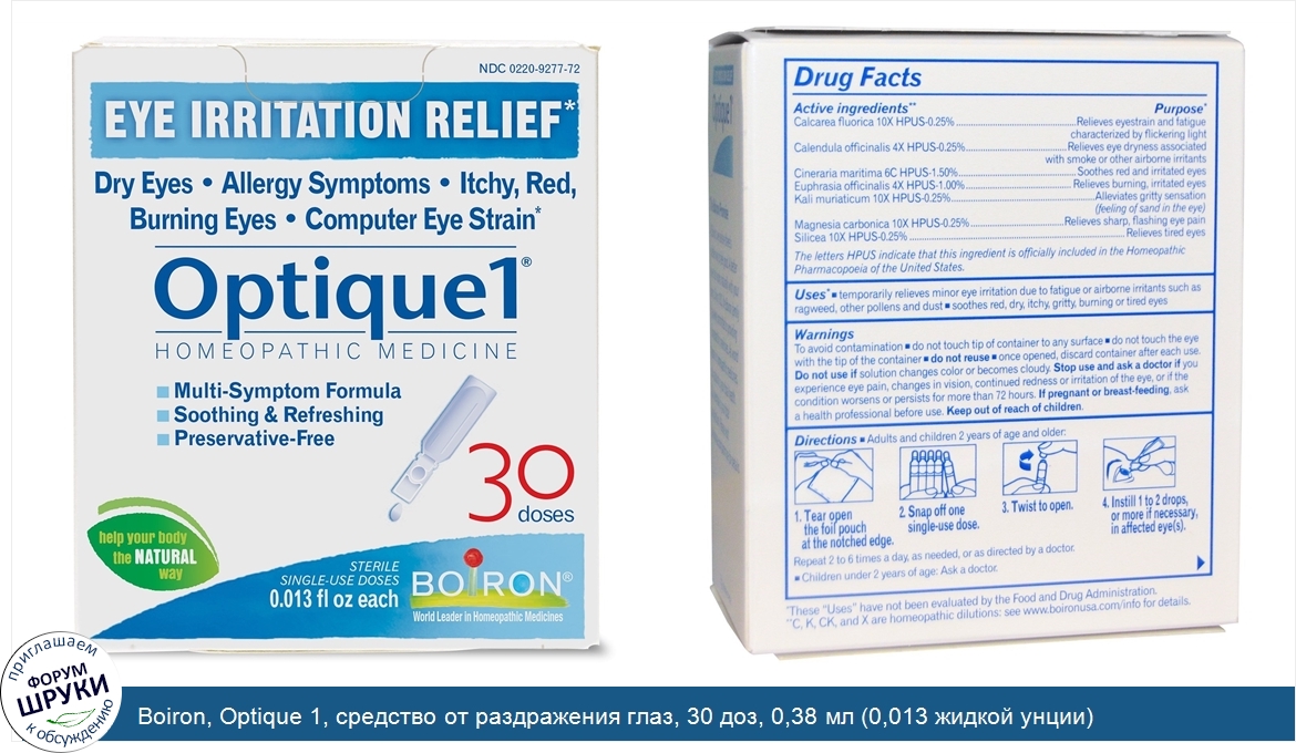 Друзья, если у вас есть отзыв/дополнение/комментарий/вопрос относительно Boiron, Optique 1, средство от раздражения глаз, 30 доз, 0,38 мл (0,013 жидкой унции) каждая - напишите его ответом в эту тему (это будет полезно всему сообществу в целом и вам в отдельности).