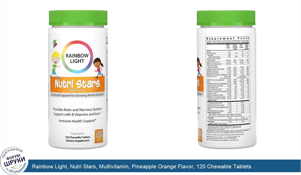 Друзья, если у вас есть отзыв/дополнение/комментарий/вопрос относительно Rainbow Light, Nutri Stars, Multivitamin, Pineapple Orange Flavor, 120 Chewable Tablets - напишите его ответом в эту тему (это будет полезно всему сообществу в целом и вам в отдельности).