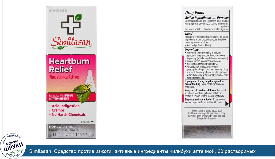 Друзья, если у вас есть отзыв/дополнение/комментарий/вопрос относительно Similasan, Средство против изжоги, активные ингредиенты чилибухи аптечной, 60 растворимых таблеток - напишите его ответом в эту тему (это будет полезно всему сообществу в целом и вам в отдельности).