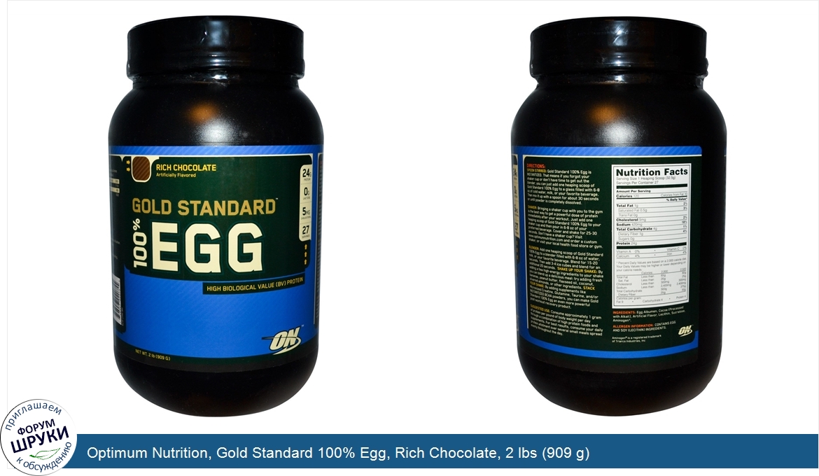 Optimum Nutrition, Gold Standard 100% Egg, Rich Chocolate, 2 lbs (909 g)
