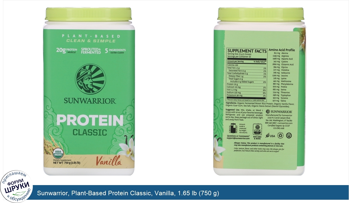 Друзья, если у вас есть отзыв/дополнение/комментарий/вопрос относительно Sunwarrior, Plant-Based Protein Classic, Vanilla, 1.65 lb (750 g) - напишите его ответом в эту тему (это будет полезно всему сообществу в целом и вам в отдельности).