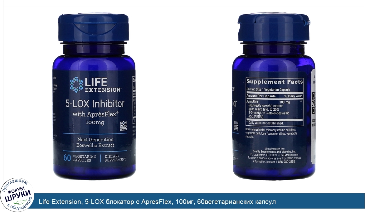 Life Extension, 5-LOX блокатор с ApresFlex, 100мг, 60вегетарианских капсул