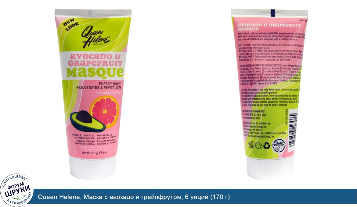 ru Queen Helene, Маска с авокадо и грейпфрутом, 6 унций (170 г)
