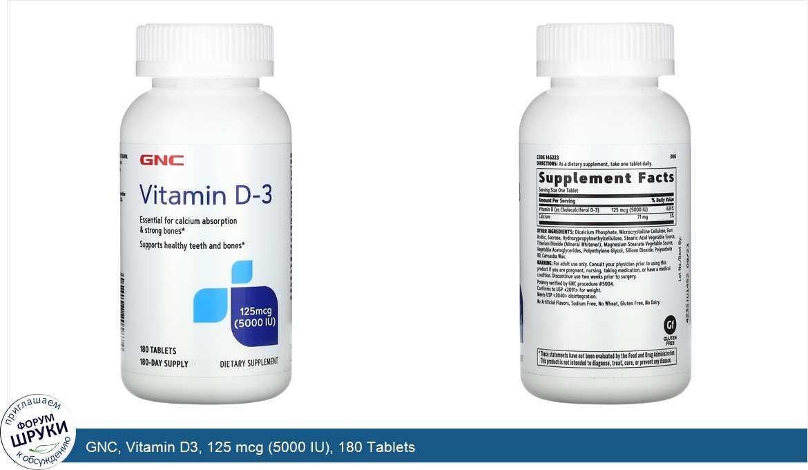 Друзья, если у вас есть отзыв/дополнение/комментарий/вопрос относительно GNC, Vitamin D3, 125 mcg (5000 IU), 180 Tablets - напишите его ответом в эту тему (это будет полезно всему сообществу в целом и вам в отдельности).