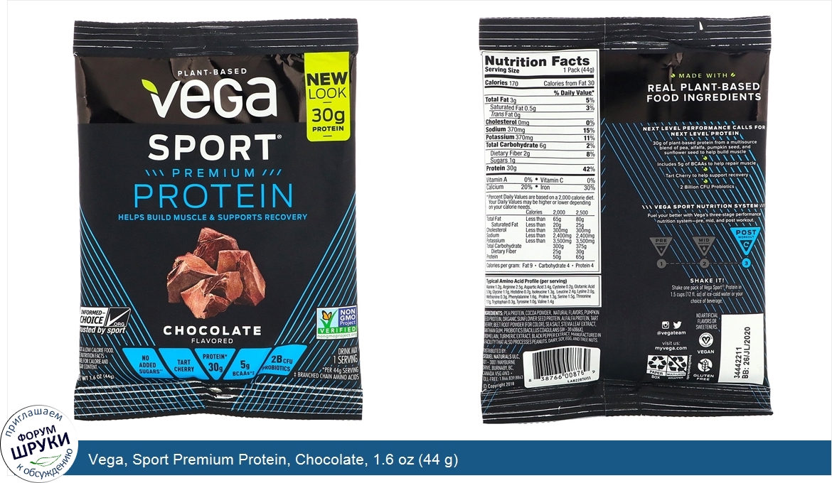 Друзья, если у вас есть отзыв/дополнение/комментарий/вопрос относительно Vega, Sport Premium Protein, Chocolate, 1.6 oz (44 g) - напишите его ответом в эту тему (это будет полезно всему сообществу в целом и вам в отдельности).
