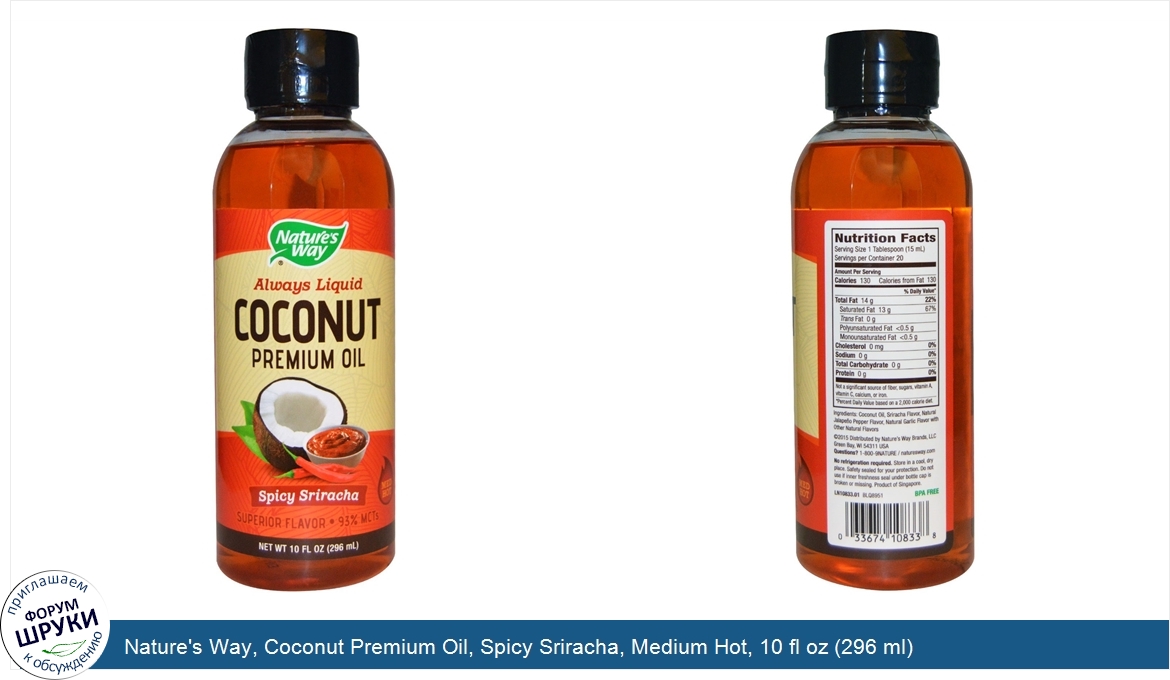 Друзья, если у вас есть отзыв/дополнение/комментарий/вопрос относительно Nature's Way, Coconut Premium Oil, Spicy Sriracha, Medium Hot, 10 fl oz (296 ml) - напишите его ответом в эту тему (это будет полезно всему сообществу в целом и вам в отдельности).