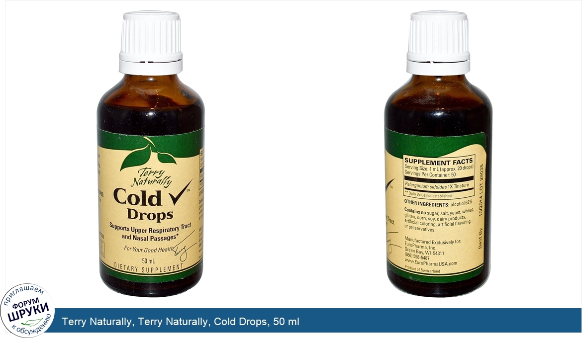 Друзья, если у вас есть отзыв/дополнение/комментарий/вопрос относительно Terry Naturally, Terry Naturally, Cold Drops, 50 ml - напишите его ответом в эту тему (это будет полезно всему сообществу в целом и вам в отдельности).