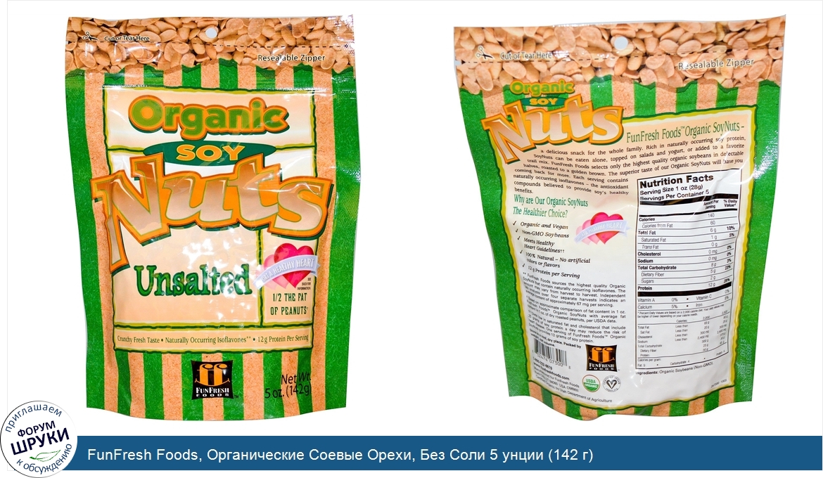 Друзья, если у вас есть отзыв/дополнение/комментарий/вопрос относительно FunFresh Foods, Органические Соевые Орехи, Без Соли 5 унции (142 г) - напишите его ответом в эту тему (это будет полезно всему сообществу в целом и вам в отдельности).