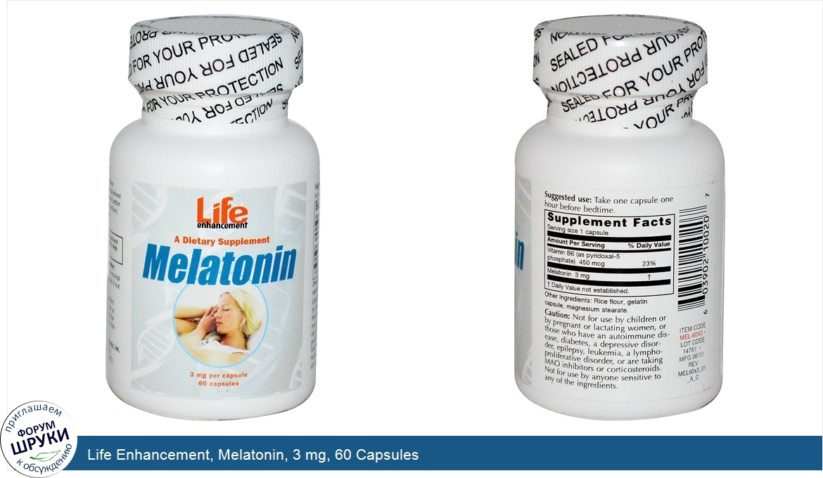 Друзья, если у вас есть отзыв/дополнение/комментарий/вопрос относительно Life Enhancement, Melatonin, 3 mg, 60 Capsules - напишите его ответом в эту тему (это будет полезно всему сообществу в целом и вам в отдельности).