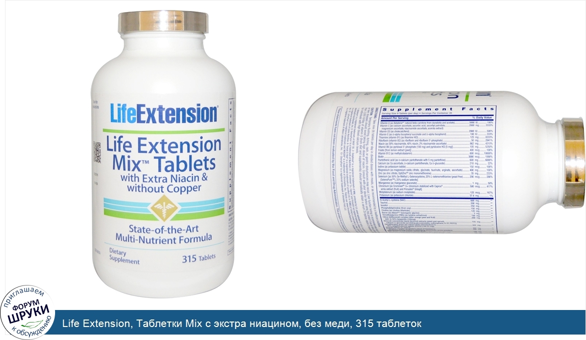Life Extension, Таблетки Mix с экстра ниацином, без меди, 315 таблеток