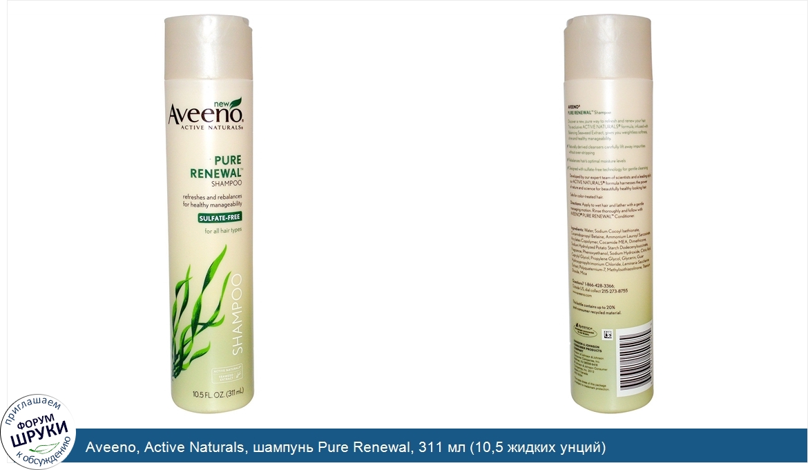 ru Aveeno, Active Naturals, шампунь Pure Renewal, 311 мл (10,5 жидких унций)