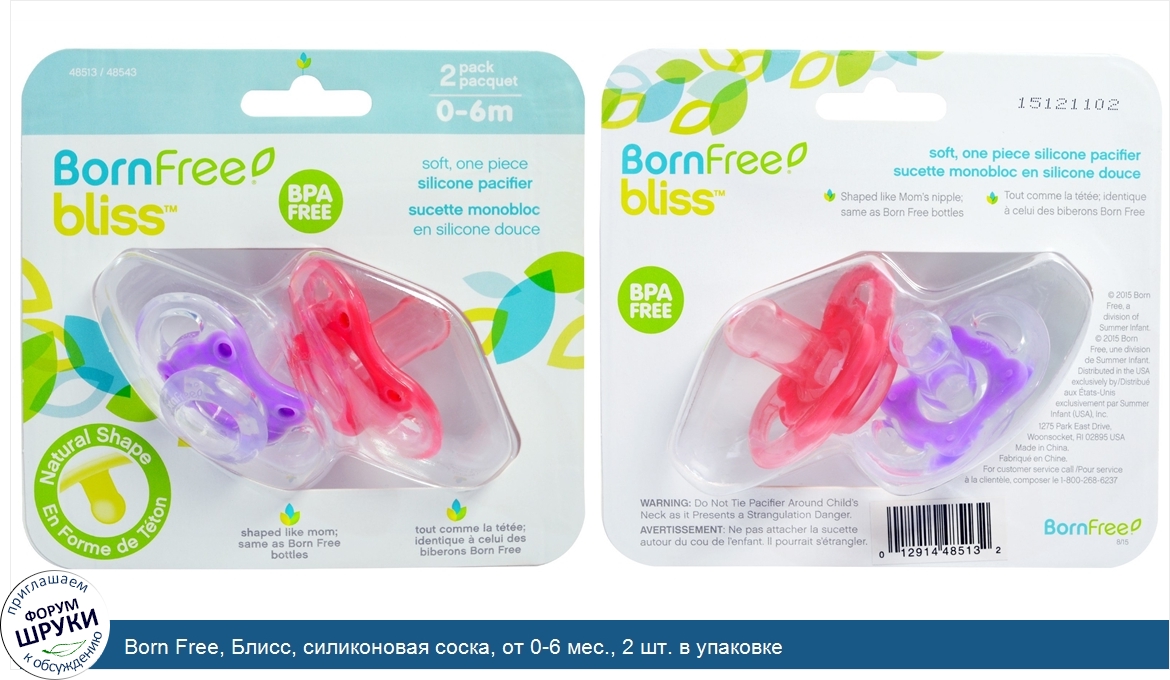 [DESCRIPT]BPA Free. Soft, One Piece Silicone Pacifier. Natural Shape. Shaped Like Mom; Same as Born Free Bottles. Bliss Natural Shape Pacifier is a safe, 1 piece silicone button pacifier designed to comfort and soothe baby. The natural shape nipple is the same as those used in the Born Free Bottle System, allowing for an easier transition between bottle and pacifier.[/DESCRIPT]... (описание дополняется)