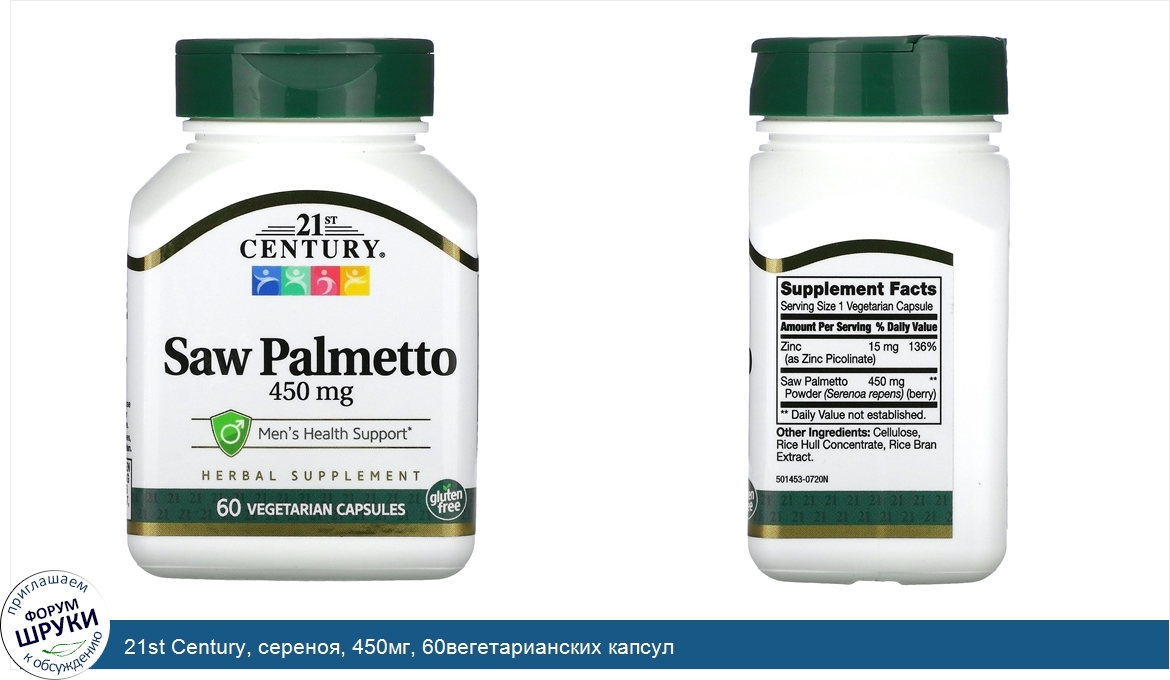 21st Century, сереноя, 450мг, 60вегетарианских капсул