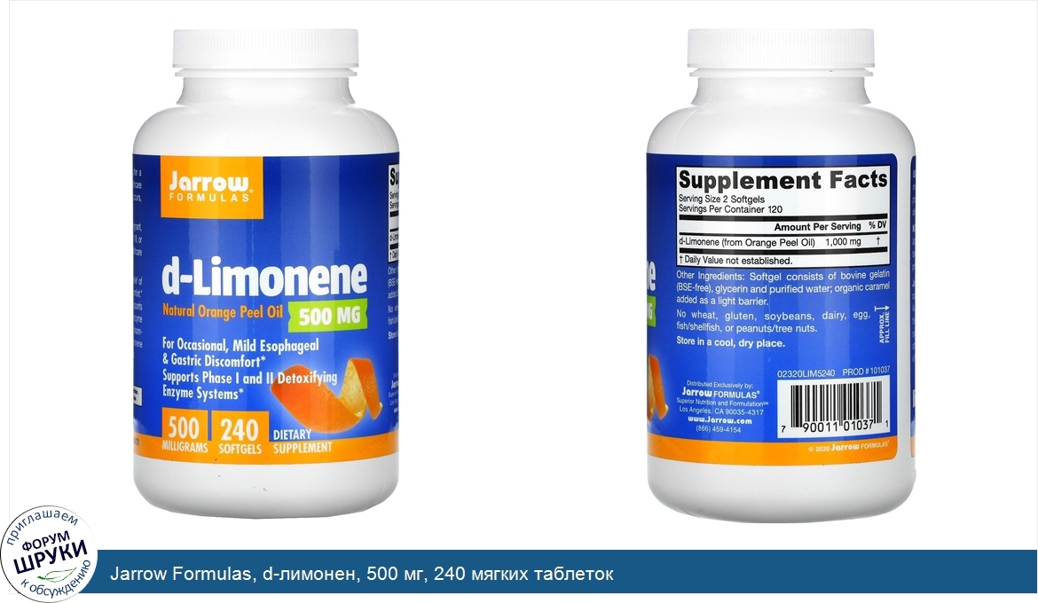 Друзья, если у вас есть отзыв/дополнение/комментарий/вопрос относительно Jarrow Formulas, d-лимонен, 500 мг, 240 мягких таблеток - напишите его ответом в эту тему (это будет полезно всему сообществу в целом и вам в отдельности).