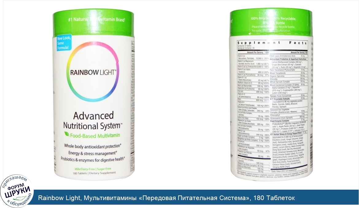 Друзья, если у вас есть отзыв/дополнение/комментарий/вопрос относительно Rainbow Light, Мультивитамины «Передовая Питательная Система», 180 Таблеток - напишите его ответом в эту тему (это будет полезно всему сообществу в целом и вам в отдельности).