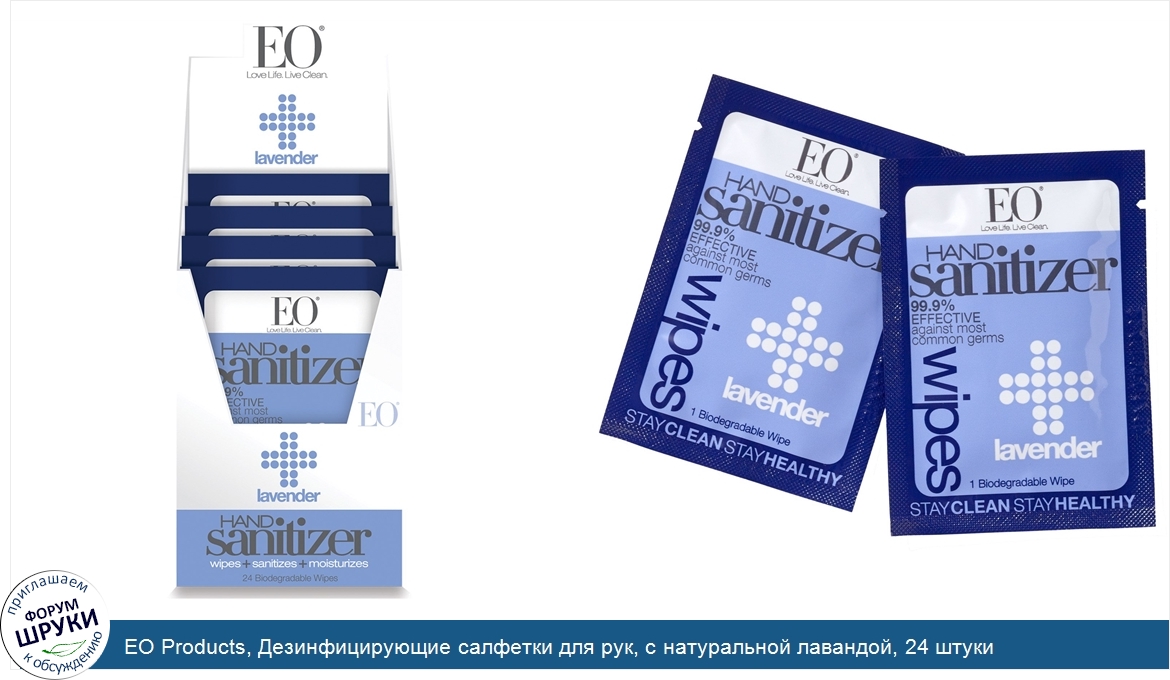 Друзья, если у вас есть отзыв/дополнение/комментарий/вопрос относительно EO Products, Дезинфицирующие салфетки для рук, с натуральной лавандой, 24 штуки - напишите его ответом в эту тему (это будет полезно всему сообществу в целом и вам в отдельности).