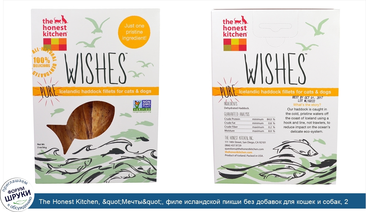 Друзья, если у вас есть отзыв/дополнение/комментарий/вопрос относительно The Honest Kitchen, "Мечты", филе исландской пикши без добавок для кошек и собак, 2 унции (56 г) - напишите его ответом в эту тему (это будет полезно всему сообществу в целом и вам в отдельности).