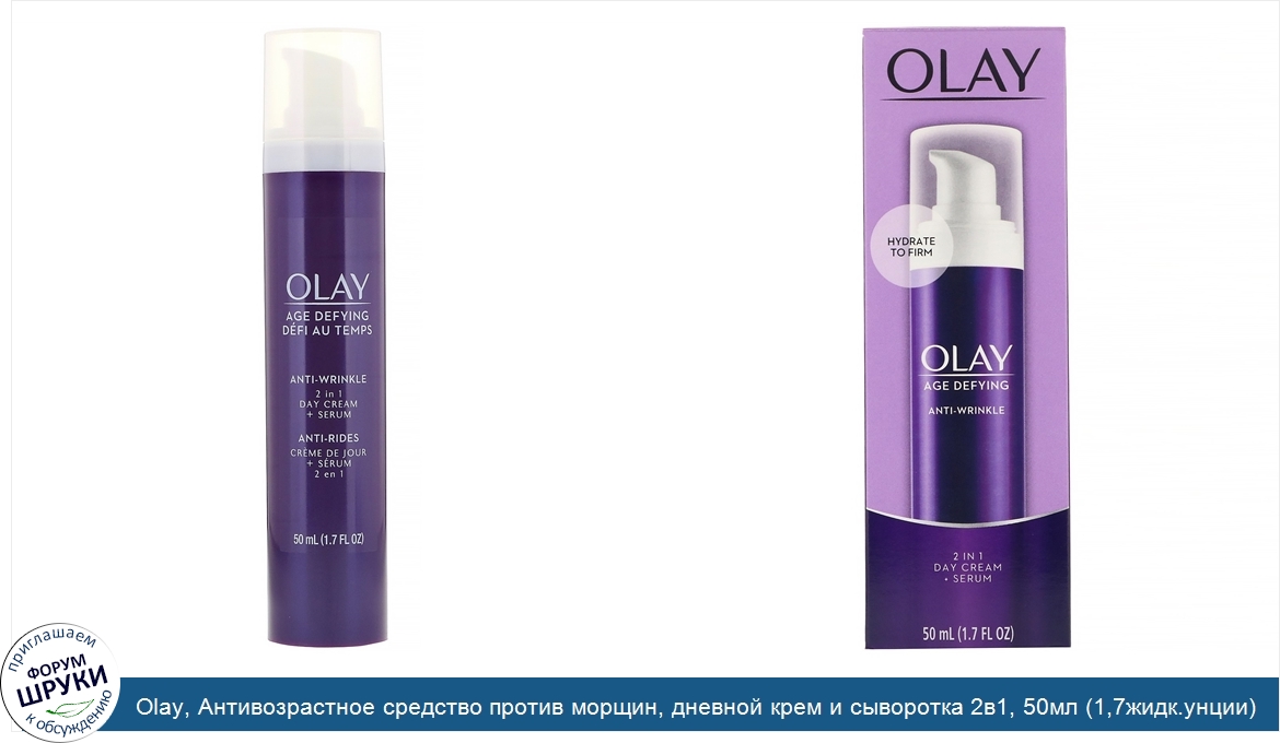 Olay, Антивозрастное средство против морщин, дневной крем и сыворотка 2в1, 50мл (1,7жидк.унции)