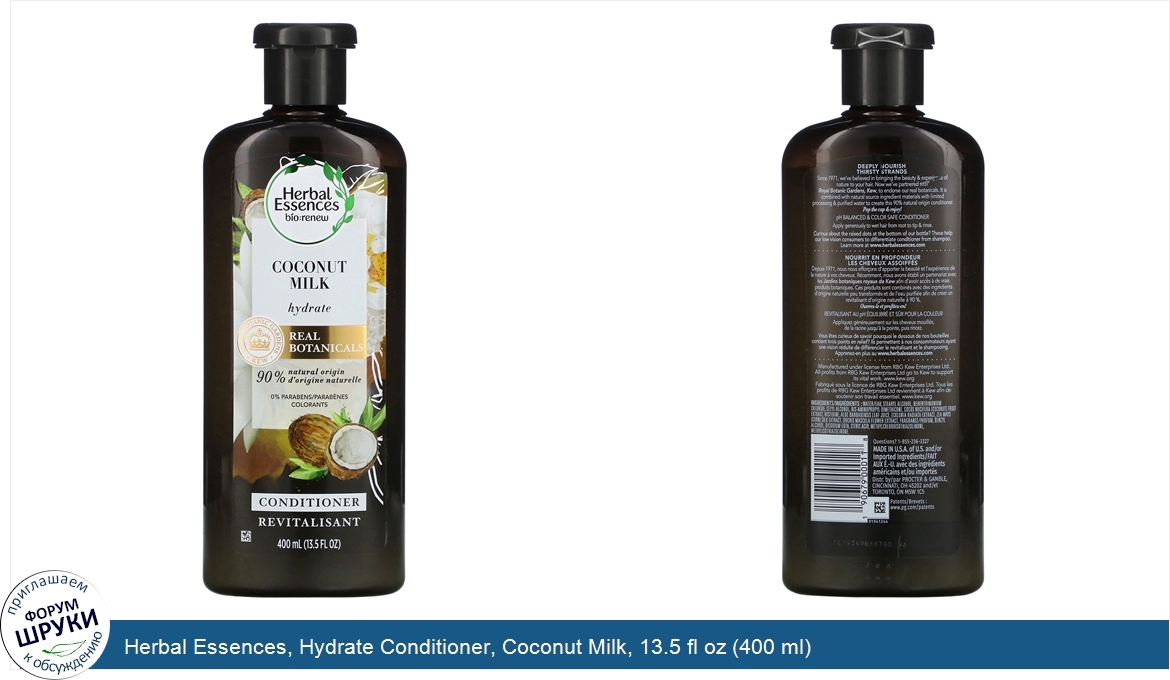 Друзья, если у вас есть отзыв/дополнение/комментарий/вопрос относительно Herbal Essences, Hydrate Conditioner, Coconut Milk, 13.5 fl oz (400 ml) - напишите его ответом в эту тему (это будет полезно всему сообществу в целом и вам в отдельности).