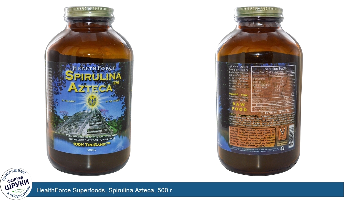 Друзья, если у вас есть отзыв/дополнение/комментарий/вопрос относительно HealthForce Superfoods, Spirulina Azteca, 500 г - напишите его ответом в эту тему (это будет полезно всему сообществу в целом и вам в отдельности).
