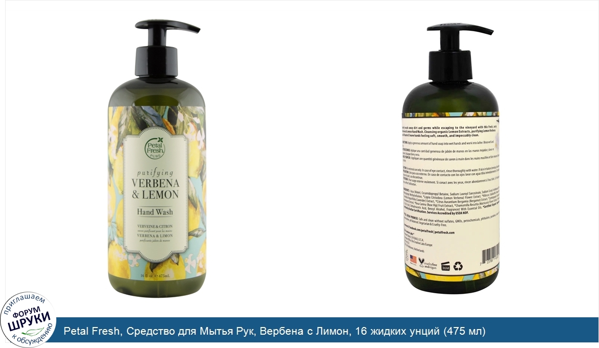 Друзья, если у вас есть отзыв/дополнение/комментарий/вопрос относительно Petal Fresh, Средство для Мытья Рук, Вербена с Лимон, 16 жидких унций (475 мл) - напишите его ответом в эту тему (это будет полезно всему сообществу в целом и вам в отдельности).