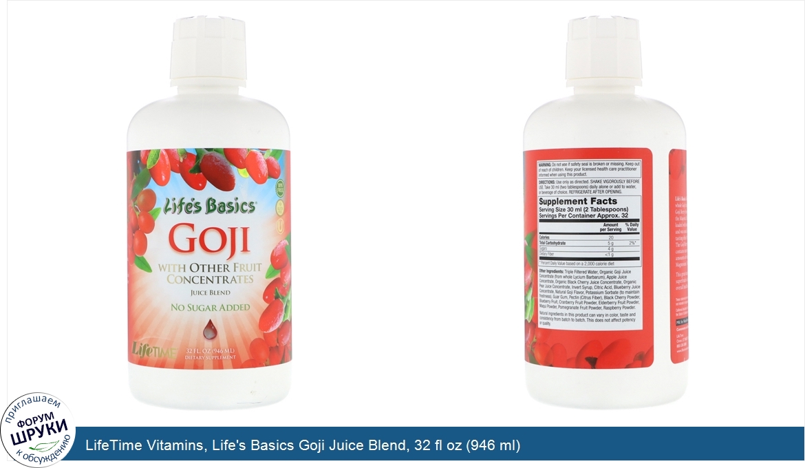 Друзья, если у вас есть отзыв/дополнение/комментарий/вопрос относительно LifeTime Vitamins, Life's Basics Goji Juice Blend, 32 fl oz (946 ml) - напишите его ответом в эту тему (это будет полезно всему сообществу в целом и вам в отдельности).