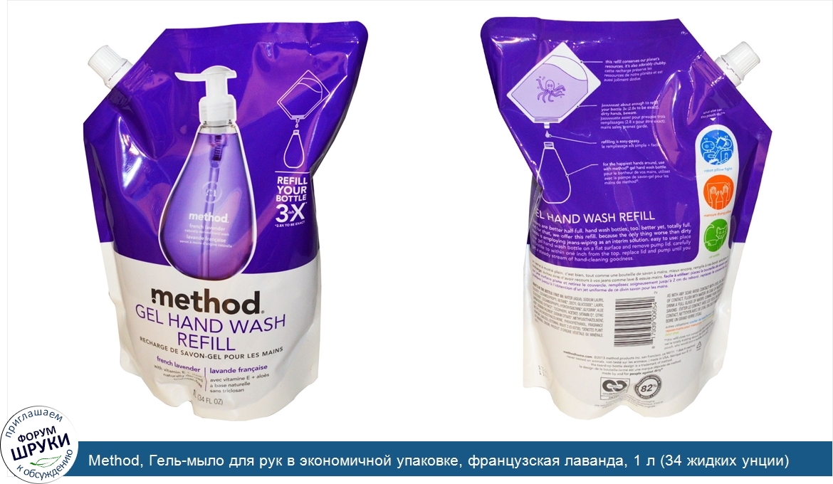 Друзья, если у вас есть отзыв/дополнение/комментарий/вопрос относительно Method, Гель-мыло для рук в экономичной упаковке, французская лаванда, 1 л (34 жидких унции) - напишите его ответом в эту тему (это будет полезно всему сообществу в целом и вам в отдельности).