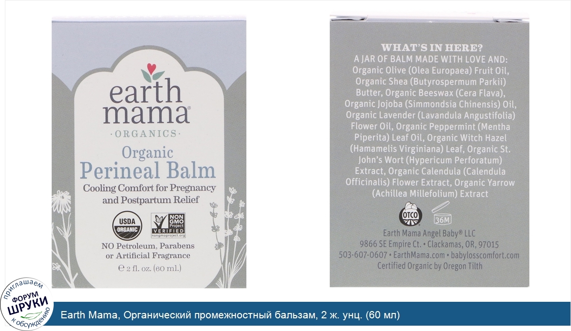 Друзья, если у вас есть отзыв/дополнение/комментарий/вопрос относительно Earth Mama, Органический промежностный бальзам, 2 ж. унц. (60 мл) - напишите его ответом в эту тему (это будет полезно всему сообществу в целом и вам в отдельности).