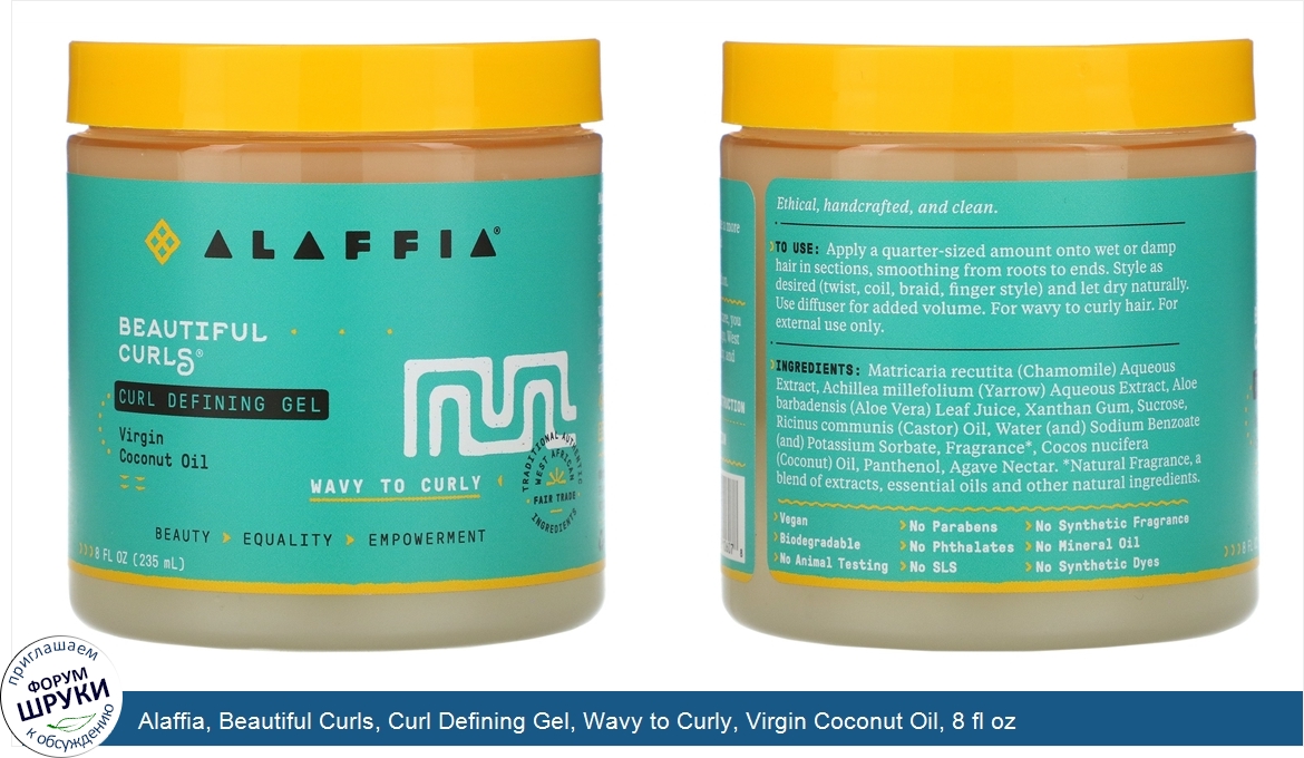 Друзья, если у вас есть отзыв/дополнение/комментарий/вопрос относительно Alaffia, Beautiful Curls, Curl Defining Gel, Wavy to Curly, Virgin Coconut Oil, 8 fl oz (235 ml) - напишите его ответом в эту тему (это будет полезно всему сообществу в целом и вам в отдельности).