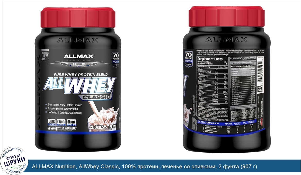 Друзья, если у вас есть отзыв/дополнение/комментарий/вопрос относительно ALLMAX Nutrition, AllWhey Classic, 100% протеин, печенье со сливками, 2 фунта (907 г) - напишите его ответом в эту тему (это будет полезно всему сообществу в целом и вам в отдельности).