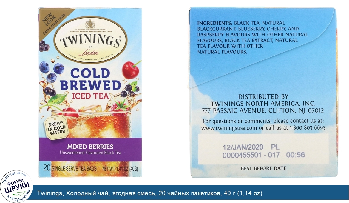 [DESCRIPT]Estd 1706. Unsweetened Black Tea. Brews in Cold Water. Ethical Tea Partnership. Over 300 Years Of Experience. Kosher. Sourced with Care. Twinings Mixed Berries is a delicious alternative to packaged or traditionally prepared iced teas. This blend combines carefully selected Black teas with the luscious fruit flavors of cherry, blueberry, blackcurrant and raspberry to yield a full-flavored iced tea with a delightful aroma. Twinings has perfected that art of delivering a refreshing glass of iced tea in just minutes. Made with real tea leaves, our unique blend delivers the same full-bodies taste as fresh-brewed ice tea, prepared in just 5 minutes.[/DESCRIPT]... (описание дополняется)