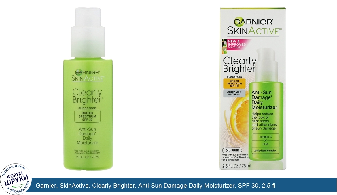 Garnier, SkinActive, Clearly Brighter, Anti-Sun Damage Daily Moisturizer, SPF 30, 2.5 fl oz (75 ml)