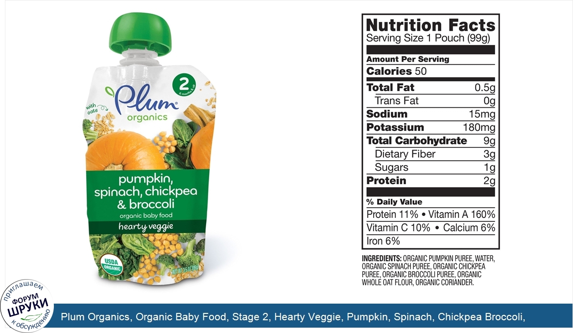 Друзья, если у вас есть отзыв/дополнение/комментарий/вопрос относительно Plum Organics, Organic Baby Food, Stage 2, Hearty Veggie, Pumpkin, Spinach, Chickpea Broccoli, 3.5 oz (99 g) - напишите его ответом в эту тему (это будет полезно всему сообществу в целом и вам в отдельности).