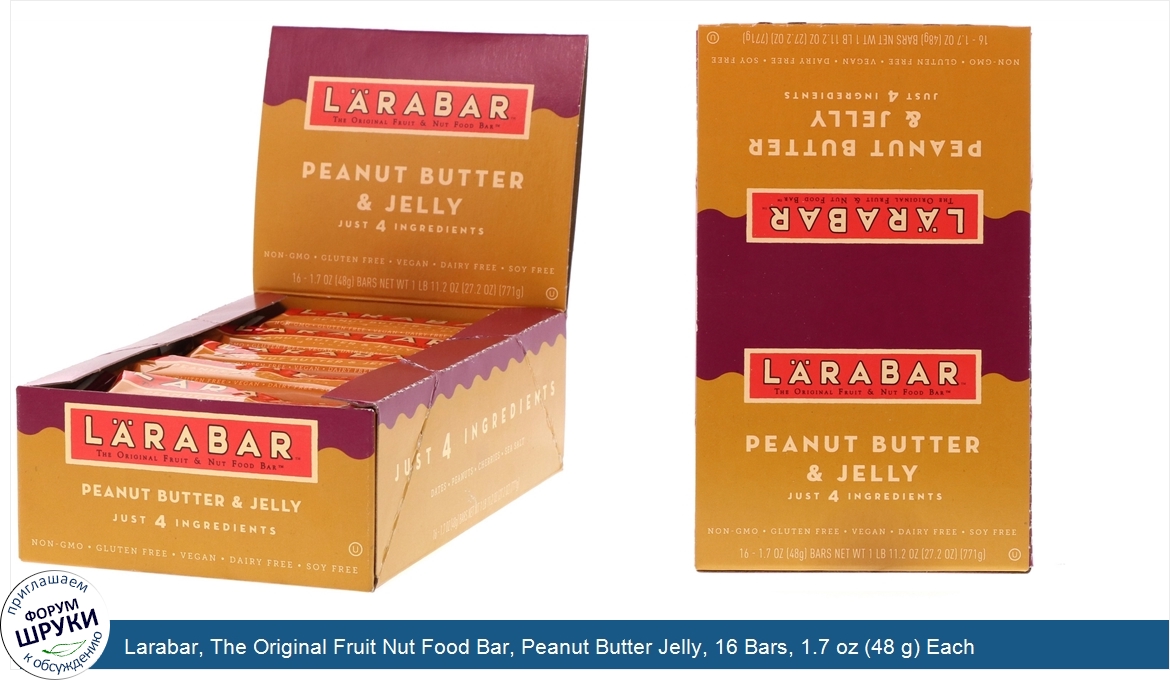 Друзья, если у вас есть отзыв/дополнение/комментарий/вопрос относительно Larabar, The Original Fruit Nut Food Bar, Peanut Butter Jelly, 16 Bars, 1.7 oz (48 g) Each - напишите его ответом в эту тему (это будет полезно всему сообществу в целом и вам в отдельности).