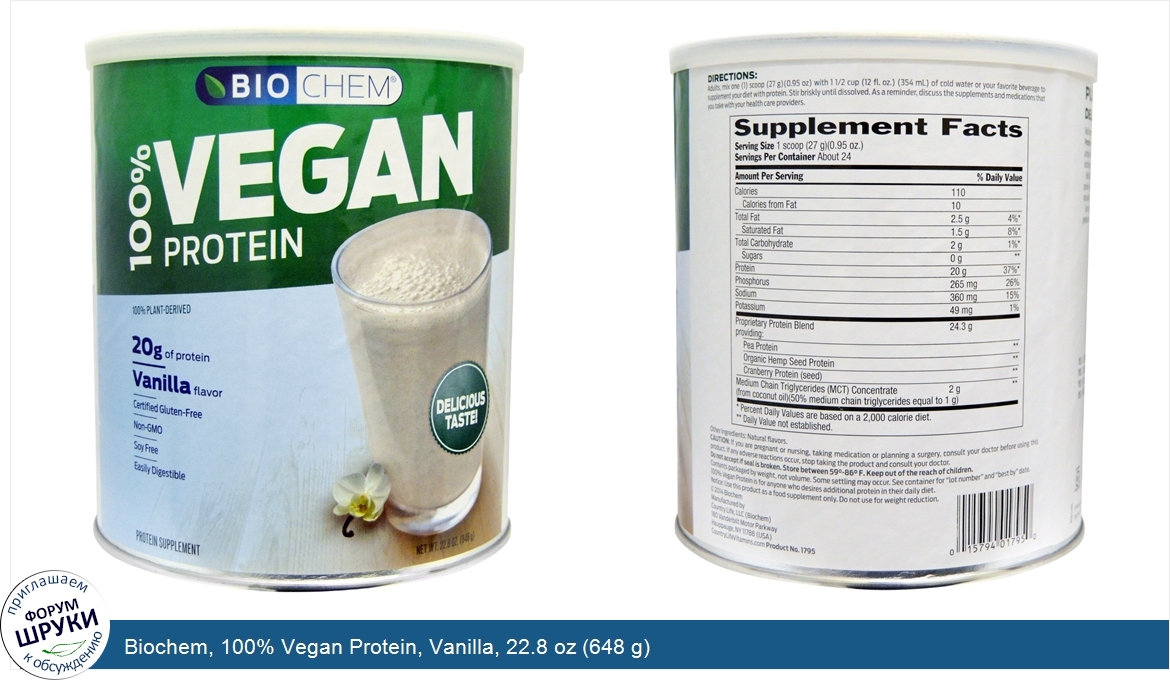 Biochem, 100% Vegan Protein, Vanilla, 22.8 oz (648 g)