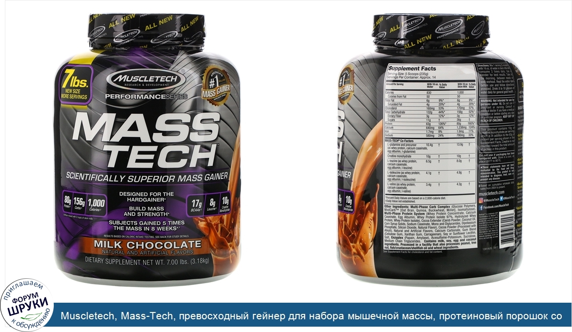 Друзья, если у вас есть отзыв/дополнение/комментарий/вопрос относительно Muscletech, Mass-Tech, превосходный гейнер для набора мышечной массы, протеиновый порошок со вкусом молочного шоколада, 3,18кг (7фунтов) - напишите его ответом в эту тему (это будет полезно всему сообществу в целом и вам в отдельности).